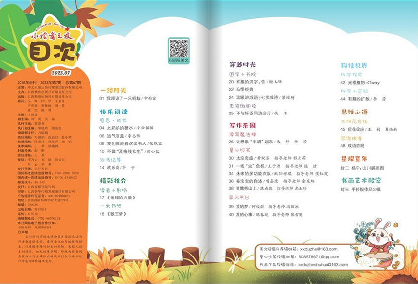 作為一份深受讀者喜愛和信賴的刊物,《小讀者之友》始終堅(jiān)持高品質(zhì)與純正格調(diào),堅(jiān)決抵制低俗內(nèi)容,為小讀者營(yíng)造健康、陽(yáng)光的閱讀環(huán)境。它不僅是孩子們汲取知識(shí)、收獲快樂的芳草地,更是他們塑造良好品格、啟迪人生智慧的良師益友。許多孩子在其陪伴下,愛上了閱讀,學(xué)會(huì)了觀察與思考,開啟了通往廣闊世界的一扇明亮窗戶。