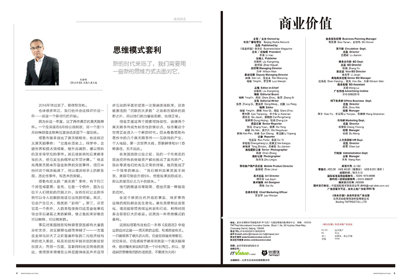 《商業(yè)價(jià)值》雜志作為中國(guó)“技術(shù)商業(yè)”媒體的代表性刊物,雜志以商業(yè)界的“變革者”為核心讀者群,涵蓋企業(yè)決策者、職業(yè)經(jīng)理人、創(chuàng)新企業(yè)家及商業(yè)研究學(xué)者等群體,旨在為這一群體提供兼具前瞻性與實(shí)操性的商業(yè)洞察。