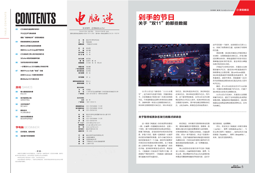 《電腦迷》主要欄目:特別策劃,職場(chǎng),新手帖,資源推薦,應(yīng)用技巧,游戲,讀編互動(dòng)等。