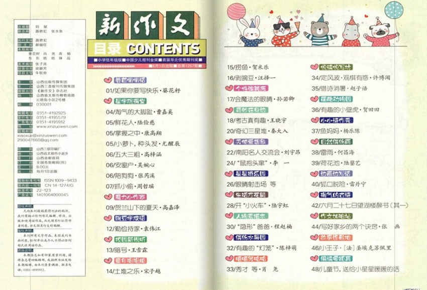《新作文》(月刊)經(jīng)過多年的不懈努力,流行度高,大眾辨識度廣,創(chuàng)刊于2001年,開拓了視野,帶給讀者富有生活特色的內(nèi)容?!缎伦魑摹肥且槐旧拾邤痰淖魑碾s志,更是陪伴孩子快樂成長、滋養(yǎng)孩子生命的心靈讀物,富有朝氣的編輯團隊,專業(yè)的兒童插畫師,聯(lián)手打造,圖文并茂,全彩印刷,帶給小讀者不一樣的閱讀體驗!