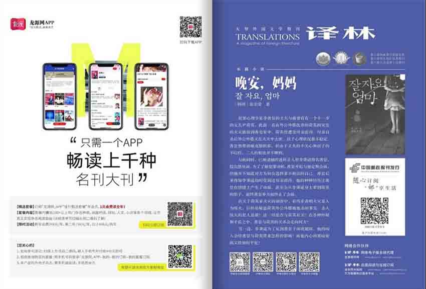 《譯林》雜志是一本以文學作品、文化、生活、人文等為主要內(nèi)容的文化類雜志,由中國譯文出版社出版。它是一本面向廣大讀者,主要涉及文學、歷史、哲學、社會科學等多個領域的綜合性雜志,旨在展現(xiàn)世界文化的多樣性、展示古今中外的人文風貌以及傳遞人類智慧和文化價值。該雜志每月出版一期,擁有超過50萬的發(fā)行量,廣泛海內(nèi)外讀者群體。