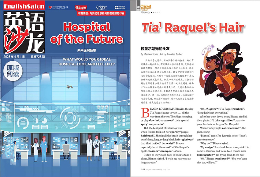 《英語(yǔ)沙龍》主要欄目:HIGHLIGHTS、SOCIAL STUDIES、CRICKET、AMERICAN CAMPUS、BRITISH COUNCIL等。