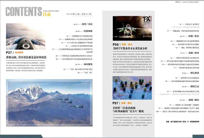 《現(xiàn)代軍事》主要欄目:神州風(fēng)采、特稿、臺(tái)海觀察、專題、展會(huì)報(bào)道、軍事裝備等。